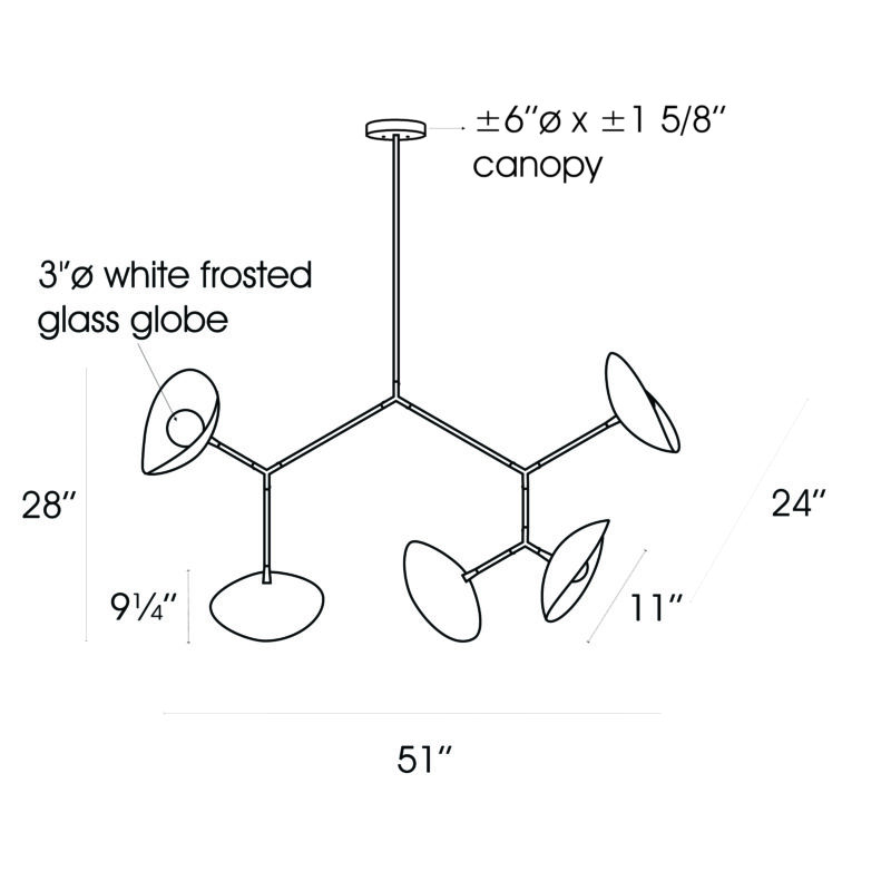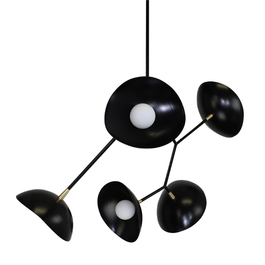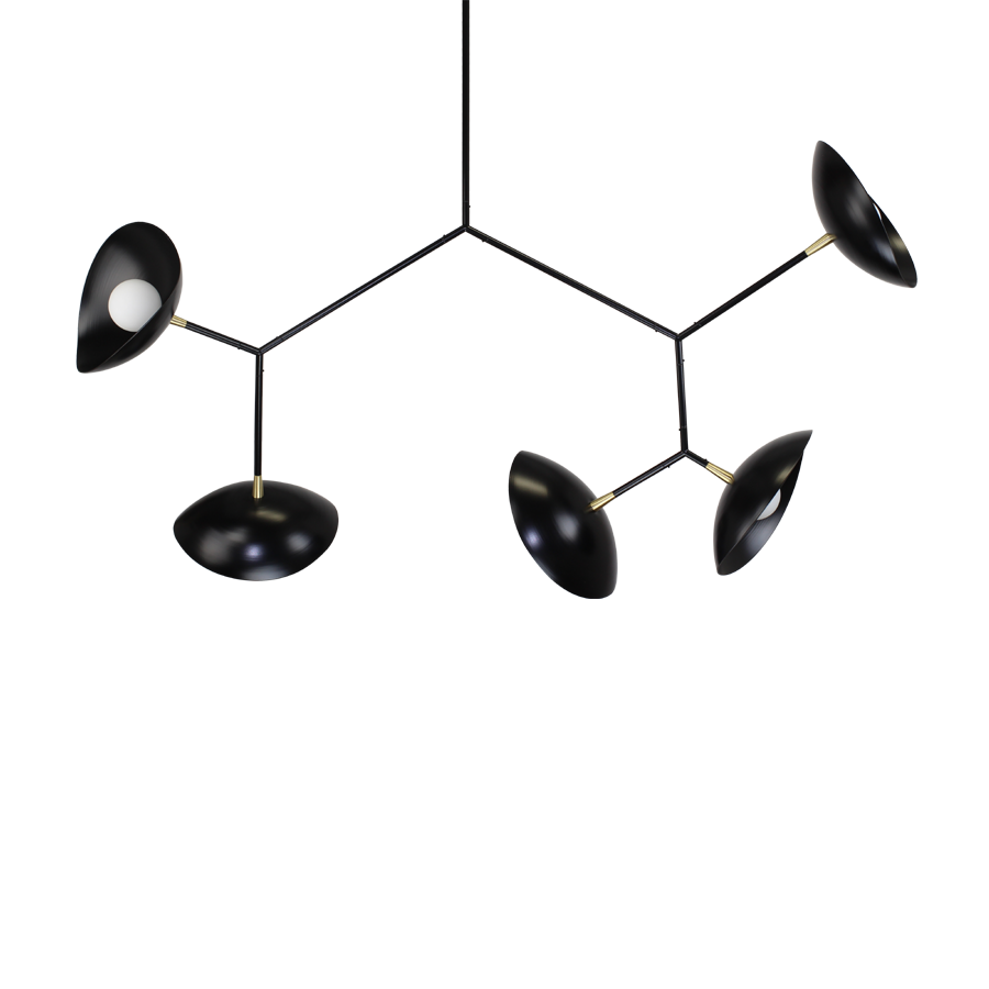 The Yolee suspension makes a bold statement with its fixed structure and clean, airy lines. It features five elliptical cups, each cradling a delicate glass globe at its center. This interplay of sculptural forms creates a harmonious contrast between the rigour of the frame and the softness of the glass. A uniquely designed luminaire that transforms light into a true aesthetic signature.